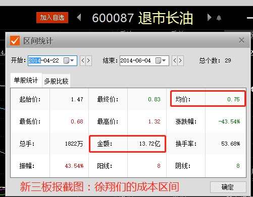 新三板報(bào)具此推算,徐翔家族共計(jì)持有2200萬股,平均成本的0.75元/股,總投入資金大概在1650萬元左右。