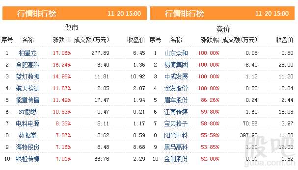 20日有49只股票的成交額突破百萬元,3只股票成交額突破千萬元。