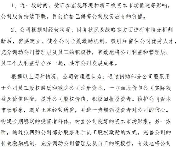 回購股份,目的是穩(wěn)定股價,穩(wěn)定投資者的信心。而公司實(shí)際控制人也表達(dá)了穩(wěn)定股價的決心,周俊及周莉承諾放棄參與股票回購。
