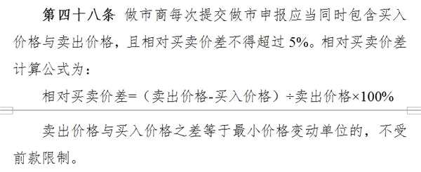 細(xì)則中第48條和66條對(duì)交易價(jià)格做了說明:做市商每次提交做市申報(bào)應(yīng)當(dāng)同時(shí)包含買入價(jià)格與賣出價(jià)格,且相對(duì)買賣價(jià)差不得超過5%;做市商間轉(zhuǎn)讓股票,其成交價(jià)格應(yīng)當(dāng)不高于前收盤價(jià)的200%或當(dāng)日最高成交價(jià)中的較高者,且不低于前收盤價(jià)的50%或當(dāng)日最低成交價(jià)中的較低者。