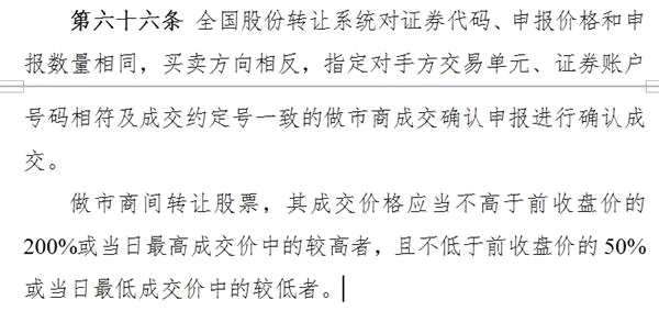 《全國(guó)中小企業(yè)股份轉(zhuǎn)讓系統(tǒng)股票轉(zhuǎn)讓細(xì)則》第66條