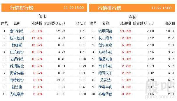 從新三板股票的市場表現(xiàn)來看,22日有0只股票漲幅超過100%,共有1只個(gè)股漲幅超過30%。