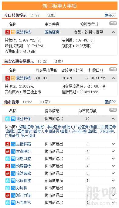 22日新增掛牌企業(yè)1家,截至2018年11月22日,掛牌企業(yè)總數(shù)達(dá)到10813家。
