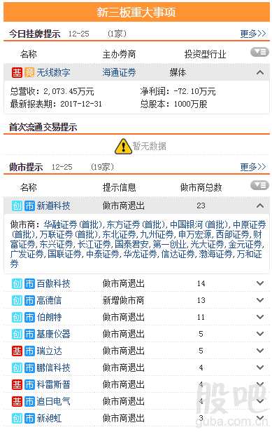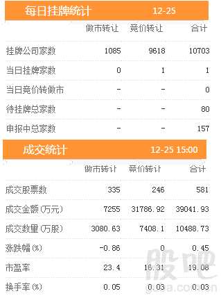 25日新增掛牌企業(yè)1家,截至2018年12月25日,掛牌企業(yè)總數(shù)達(dá)到10703家。