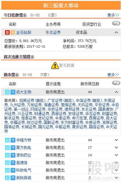 2日新增掛牌企業(yè)1家,截至2019年1月2日,掛牌企業(yè)總數(shù)達到10685家。