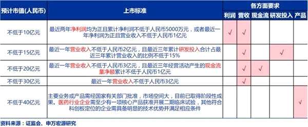 根據(jù)《上海證券交易所科創(chuàng)板股票上市規(guī)則》,擬申請科創(chuàng)板上市的企業(yè),市值和財務指標應當符合以下五項標準中的至少一項: