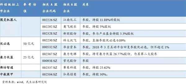 民生證券還對有科創(chuàng)板上市潛力的各行業(yè)企業(yè)及其相關(guān)A股進(jìn)行梳理,結(jié)果如圖: