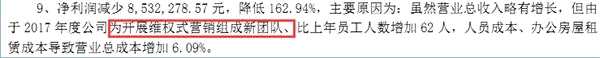 對此,公司解釋稱,收入增長是因為自主開發(fā)的搜索平臺大大提升了維權(quán)式營銷能力,在收入不斷增長的前期下,公司加大了營銷團隊、辦公室、營銷費用等方面的投入。利潤下降是因為預(yù)付款轉(zhuǎn)化成費用,應(yīng)收款又沒有收會,而且計提了資產(chǎn)減值損失3083萬元。