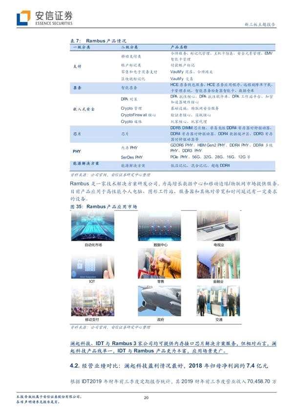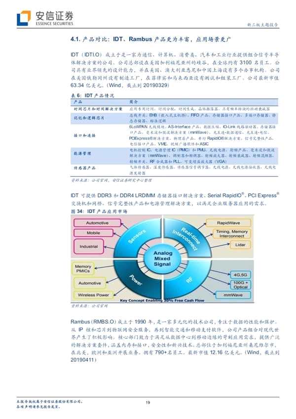 產(chǎn)品對比:瀾起科技、IDT與Rambus 3家公司均可提供內(nèi)存接口芯片解決方案服務,但相對而言,瀾起科技產(chǎn)品線單一,IDT與Rambus產(chǎn)品更為豐富,應用場景更廣。