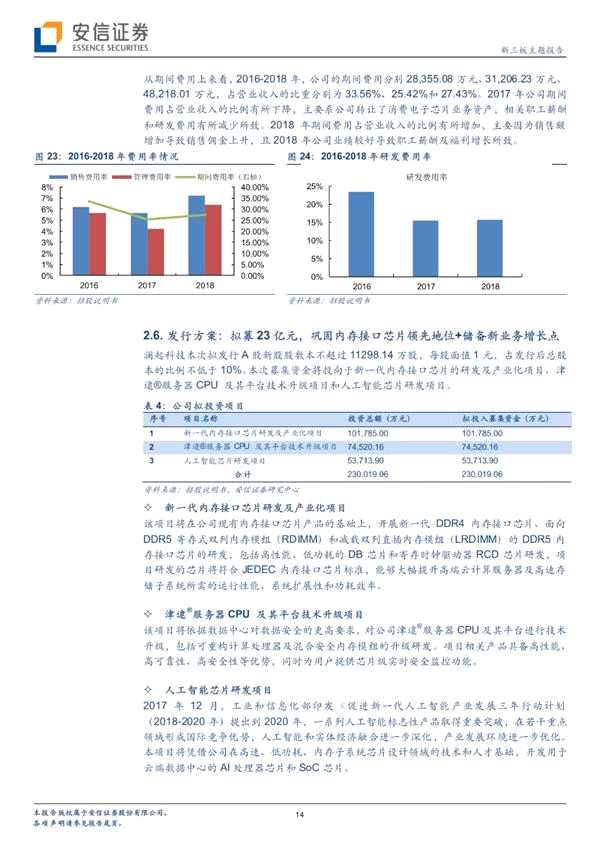 擬募集23億元,將投向于新一代內(nèi)存接口芯片的研發(fā)及產(chǎn)業(yè)化項目、 津逮服務器CPU 及其平臺技術升級項目和人工智能芯片研發(fā)項目。