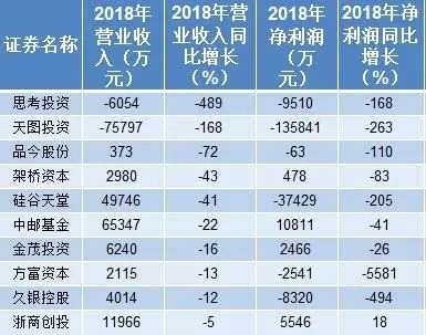 有10家則同比出現(xiàn)下滑,天圖投資、思考投資去年?duì)I收大幅減少,以致出現(xiàn)少見(jiàn)的負(fù)數(shù)。天圖投資去年?duì)I收為-7.58億元,思考投資為-6054萬(wàn)元,品今股份2018年?duì)I收也下滑超過(guò)七成。