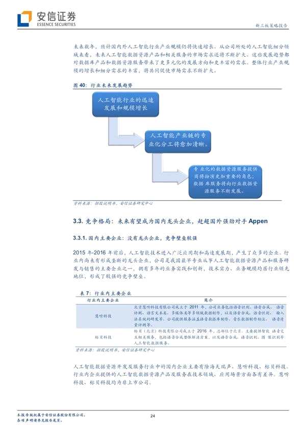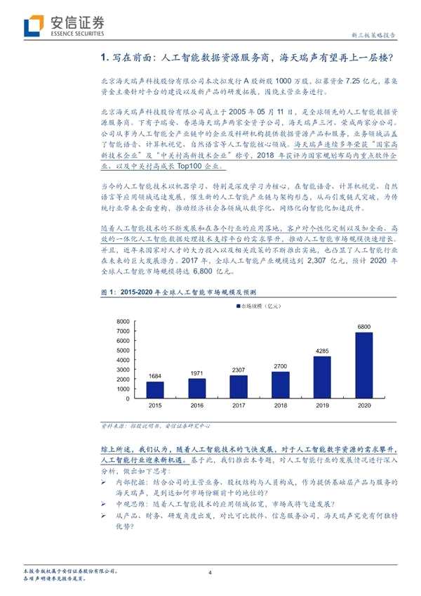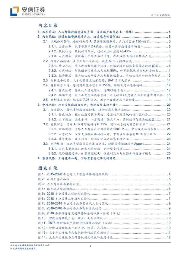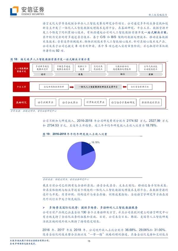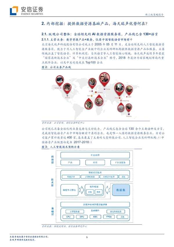 摘要 【海天瑞聲擬科創(chuàng)板上市 有望成為人工智能數(shù)據(jù)服務國內(nèi)龍頭?】海天瑞聲是全球領先的人工智能數(shù)據(jù)資源服務商,連續(xù)多年榮獲“國家高新技術企業(yè)”及“中關村高新技術企業(yè)”稱號,2018年獲評為國家規(guī)劃布局內(nèi)重點軟件企業(yè)、以及中關村高成長Top100企業(yè)。(安信證券 ) ■內(nèi)部挖掘:提供基礎產(chǎn)品,海天瑞聲何以市場份額前十?