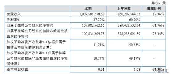 互聯(lián)網(wǎng)app查詢顯示,據(jù)公司2018年年報(bào),2018年全年公司實(shí)現(xiàn)營收10.10億元,同比增長17.36%;歸屬于掛牌公司股東的凈利潤為1.10億元,同比大幅下滑71.76%。在營收增長的情況下,凈利潤卻出現(xiàn)了逾7成的下滑,著實(shí)是一件很讓人費(fèi)解的事情。