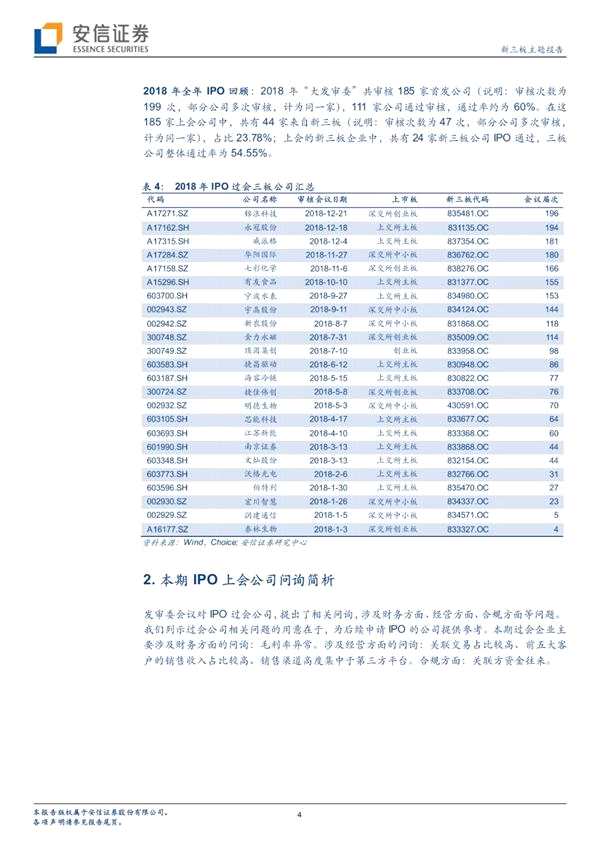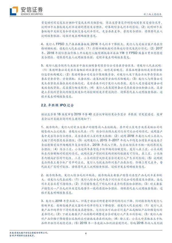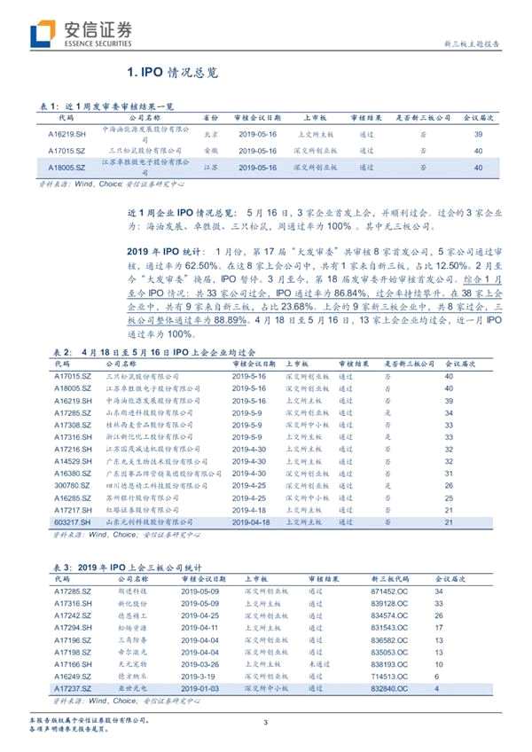 摘要: 摘要 【本期3家上會(huì)企業(yè)均IPO過會(huì)近一月IPO通過率100%】5月16日,3家企業(yè)首發(fā)上會(huì),并順利過會(huì)。過會(huì)的3家企業(yè)為:海油發(fā)展、卓勝微、三只松鼠,周通過率為100%。其中無(wú)三板公司。(安信證券)