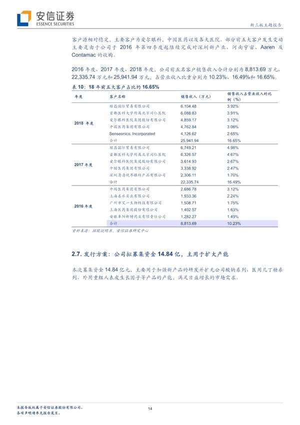 相關(guān)領(lǐng)域發(fā)展良好:醫(yī)療美容行業(yè)增長迅速,預(yù)計2020年達到2656億元規(guī)模。我國外用重組人表皮生長因子市場發(fā)展,由2013年的3.16億元增長至2017年的5.32億元,年均復(fù)合增長13.91%。骨關(guān)節(jié)腔粘彈劑補充劑市場復(fù)合增長4.74%,2017達18.64億元。2017年手術(shù)防粘連產(chǎn)品市場25.07億元,預(yù)計2020年可達51.97億元。