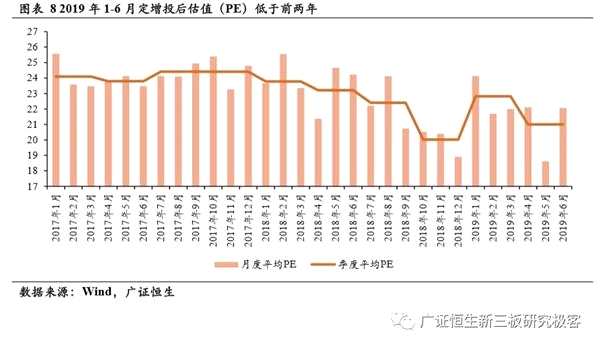 定向增發(fā):2019年1-6月,新三板定增實際募資總額為168.07億元,較去年同期下降40.50%。從估值情況看,2019年定增PE平均值為21.77倍,略低于2018年定增的PE均值23.80倍。