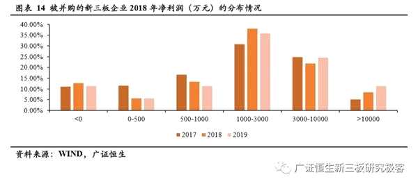 從被并購企業(yè)的規(guī)模來看,2019年上半年,被上市公司并購的新三板企業(yè)2018年歸母凈利潤平均值為7090萬元、中位數(shù)為2699萬元。較2018年被上市公司并購的新三板企業(yè)2017年的歸母凈利潤平均值3834萬元、中位數(shù)1896萬元均有所提升。