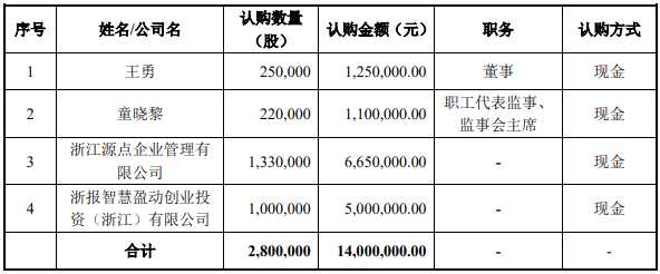 方案顯示,三博會(huì)展本次股票發(fā)行的價(jià)格為人民幣5.00元/股,發(fā)行數(shù)量為2,800,000股,預(yù)計(jì)募集資金總額為14,000,000.00元。本次發(fā)行股票募集資金主要用于補(bǔ)充流動(dòng)資金,具體安排如下: