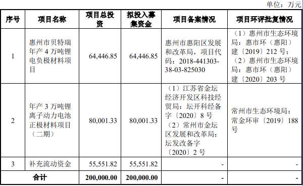 貝特瑞本次發(fā)行規(guī)模不低于2,000萬股,發(fā)行底價為24.00元/股(含本數(shù)),本次募集資金扣除發(fā)行費用后的凈額擬全部用于如下用途: