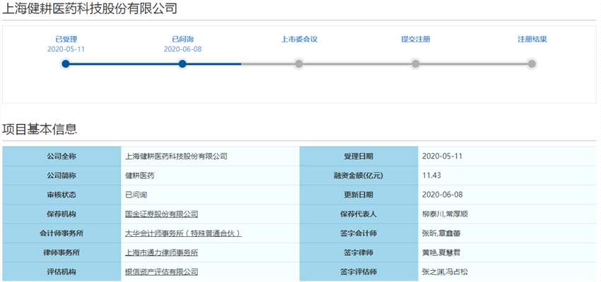 新三板摘牌公司健耕醫(yī)藥科創(chuàng)板IPO申請(qǐng)近日獲問(wèn)詢(xún)