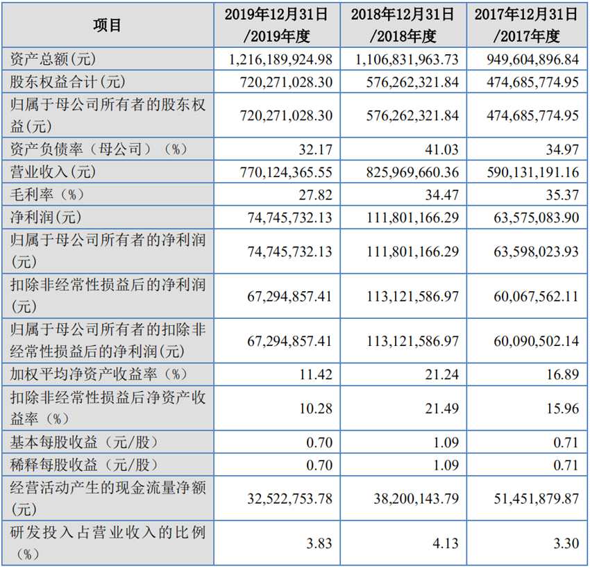 2017年-2019年,中鎂控股實(shí)現(xiàn)營收分別為5.90億元、8.26億元、7.70億元;實(shí)現(xiàn)歸屬于母公司所有者的凈利潤分別為6359.80萬元、1.12億元、7474.57萬元。