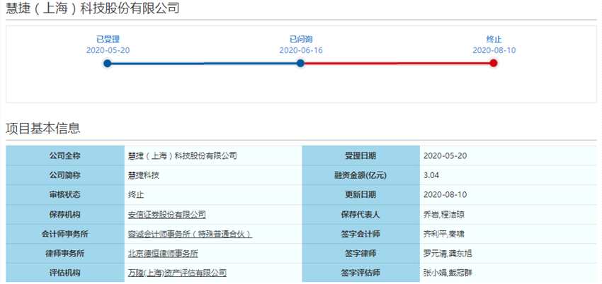 終止大隊再添一家!新三板摘牌公司慧捷科技終止科創(chuàng)板IPO