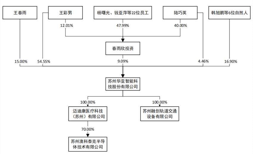 華亞智能主營業(yè)務(wù)是專業(yè)領(lǐng)域的精密金屬制造服務(wù)。公司專注于定制化精密金屬制造服務(wù),包括制造工藝研發(fā)與改善、定制化設(shè)計與開發(fā)、智能化生產(chǎn)與測試、專用設(shè)備維修與裝配等。值得一提的是,華亞智能本次IPO遭暫緩表決,截至招股說明書簽署日,華亞智能實際控制人為王彩男、其配偶陸巧英及其子王春雨。王彩男、陸巧英及王春雨直接和間接合計持有華亞智能78.74%股份,合計控制華亞智能83.10%股份。