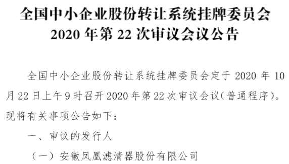 10月以來,精選層審議開啟“每周”審議模式。根據(jù)安排,新三板掛牌委將于10月22日召開會(huì)議,審議安徽鳳凰的新三板公開發(fā)行申請。