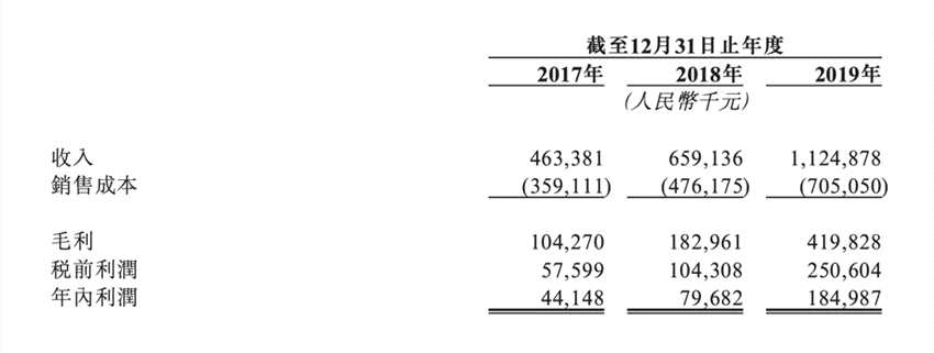 據(jù)招股書數(shù)據(jù)顯示,2017年至2019年,合景悠活的營收分別為4.63億元、6.59億元、11.24億元,復(fù)合增長率為55.8%;凈利潤為4414萬元,7968萬元及1.84億元,復(fù)合年增長率為104.7%,毛利率分別為22.5%,27.8%及37.3%。