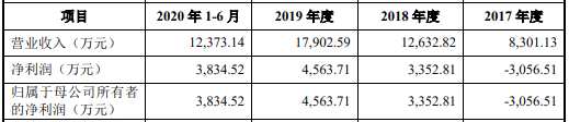 財(cái)務(wù)數(shù)據(jù)顯示,2017年至2020年上半年,騰景科技實(shí)現(xiàn)營收分別為8301.13萬元、1.26億元、1.79億元、1.24億元;實(shí)現(xiàn)歸母凈利潤分別為-3056.51萬元、3352.81萬元、4563.71萬元、3834.52萬元。