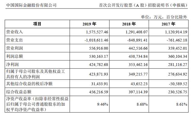 2017年-2019年,中金公司實(shí)現(xiàn)營業(yè)收入112.09億元、129.14億元、157.55億元;歸母凈利潤27.66億元、34.92億元、42.39億元。