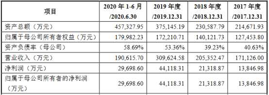 2017年至2020年上半年,生益電子實(shí)現(xiàn)營業(yè)收入分別為17.11億元、20.54億元、30.96億和19.06億元,實(shí)現(xiàn)歸屬于母公司股東的凈利潤為1.38億元、2.13億元、4.41億元和2.97億元。