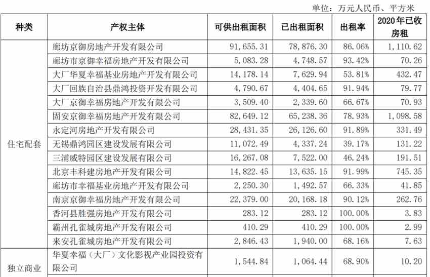此外,今年7-9月房屋出租方面,華夏幸??晒┏鲎饷娣e約122.99萬平方米,已出租面積約94.5萬平方米,2020年已收房租約1.46億元。