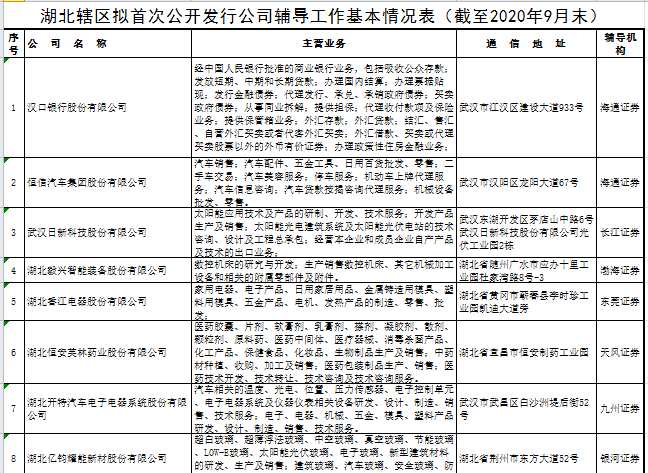 截至9月末,湖北轄區(qū)共有43家擬IPO企業(yè)