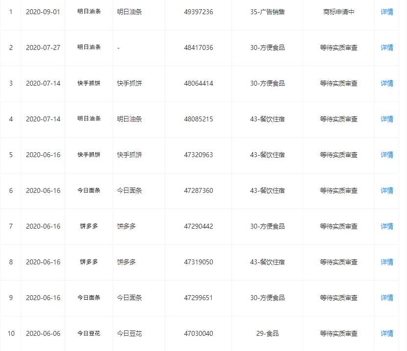 10月19日,獲悉,近日,今日頭條起訴餐飲公司今日油條商標(biāo)侵權(quán)。天眼查顯示,今日油條公司已申請(qǐng)注冊(cè):明日油條、今日油條、今日豆?jié){、今日豆花、今日面條、餅多多、快手抓餅等商標(biāo),狀態(tài)為注冊(cè)申請(qǐng)中。