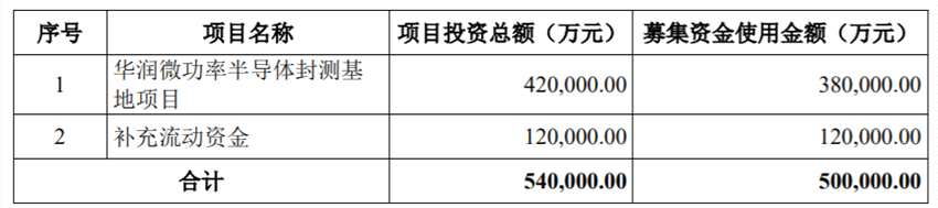 發(fā)行股票數量不超過1.35億股(含本數),即不超過本次發(fā)行后已發(fā)行股份總數的10%,發(fā)行股票募集資金總額不超過50億元人民幣(含本數),扣除發(fā)行費用后擬用于以下項目:華潤微功率半導體封測基地項目、補充流動資金。