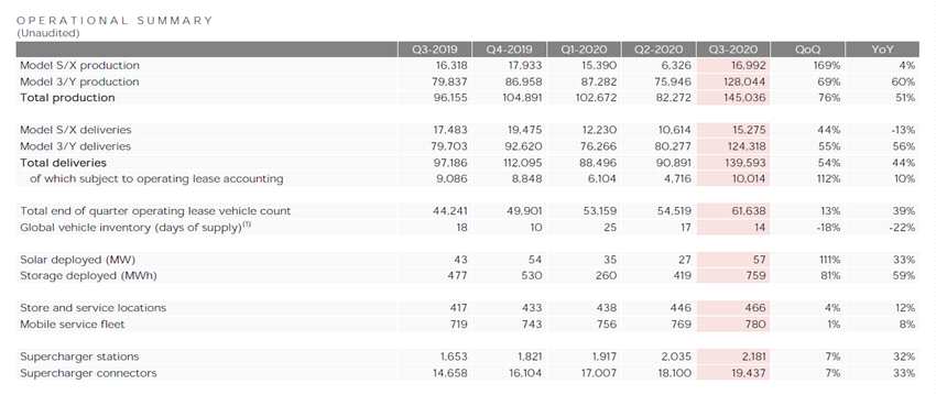 第三季度,特斯拉汽車(chē)交付量為139,593輛,同比增長(zhǎng)44%,環(huán)比增長(zhǎng)54%。三季度汽車(chē)生產(chǎn)量為145,036輛,同比增長(zhǎng)51%,環(huán)比增長(zhǎng)76%。