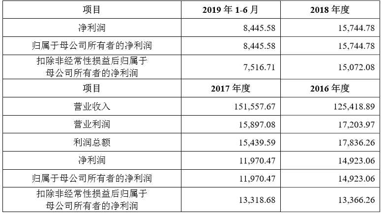 2016年至2019年上半年,一鳴食品分別實(shí)現(xiàn)營業(yè)收入125,418.89萬元、151,557.67萬元、175,496.73萬元和91,921.91萬元;實(shí)現(xiàn)歸屬于母公司所有者的凈利潤14,923.06萬元、11,970.47萬元、15,744.78萬元和8,445.58萬元。