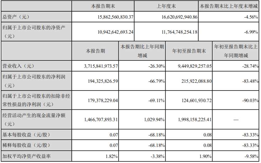 報告顯示,森馬服飾前三季度實現(xiàn)營收約94.5億元,同比下降28.74%;實現(xiàn)歸屬股東凈利潤約2.16億元,同比下降83.48%;其中第三季度實現(xiàn)營收37.16億元,同比下降26.3%。實現(xiàn)歸屬股東凈利潤1.94億元,同比下滑66.79%。