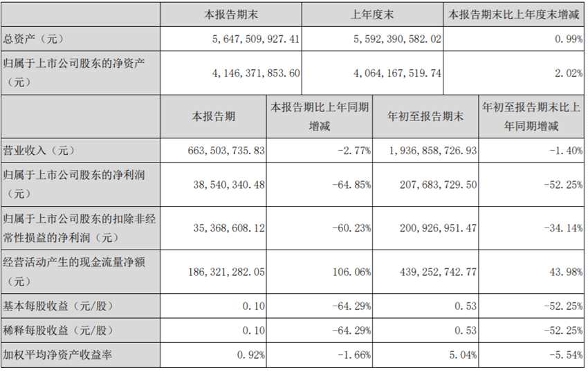 前三季度實現(xiàn)營收19.37億元,同比下滑1.4%,歸屬于公司股東的凈利潤為2.08億元,同比下滑52.25%;其中第三季實現(xiàn)營收度6.64億元,同比下滑2.77%,歸屬于公司股東的凈利潤3854.03萬元,比上年同期下滑64.85%。