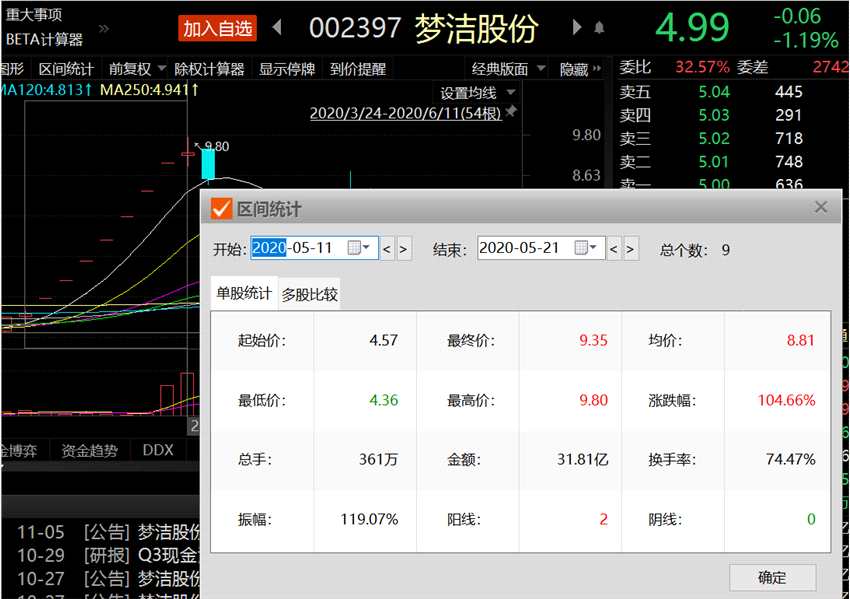 對(duì)于夢(mèng)潔股份的上述操作,有投資人士評(píng)論稱:夢(mèng)潔股份花了200萬元請(qǐng)網(wǎng)紅,換來800萬元帶貨。但同樣好景不長(zhǎng),本以為是一個(gè)極具潛力的企業(yè),炒作過后,夢(mèng)潔又拐頭向下,截至11月10日收盤,夢(mèng)潔股份報(bào)收4.99元/股。