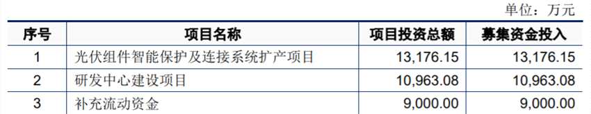 快可電子本次公開發(fā)行股票數(shù)量不超過1,600萬股,占發(fā)行后總股本的比例不低于25%。公司本次發(fā)行募集資金扣除發(fā)行費(fèi)用后,將投資于光伏組件智能保護(hù)及連接系統(tǒng)擴(kuò)產(chǎn)項(xiàng)目、研發(fā)中心建設(shè)項(xiàng)目和補(bǔ)充流動(dòng)資金,預(yù)計(jì)募集資金總額為3.31億元。