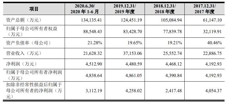 財(cái)務(wù)數(shù)據(jù)顯示,2017年至2020年上半年,諾泰生物分別實(shí)現(xiàn)營(yíng)業(yè)收入2.29億元、2.56億元、3.72億元和2.16億元,實(shí)現(xiàn)歸屬于母公司所有者凈利潤(rùn)4,192.93萬元、4,390.84萬元、4,861.05萬元和4,838.64萬元。