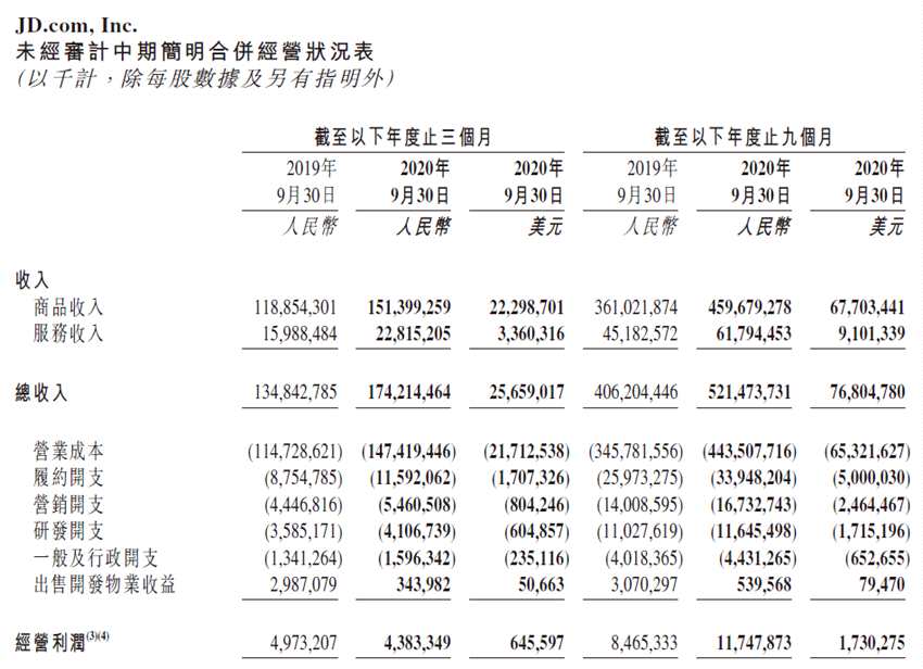 摘要: 11月17日,獲悉,美股及港股上市公司京東(JD.US,09618.HK)發(fā)布2020年第三季度財(cái)報(bào)。