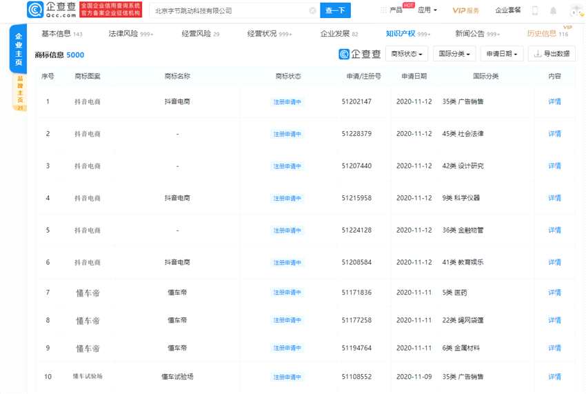 據悉,字節(jié)跳動于本月12日遞交了多項抖音商標申請,涉及國際分類項下廣告銷售、金融物管、科學儀器、社會法律、設計研究以及教育娛樂,目前均顯示注冊申請中狀態(tài)。