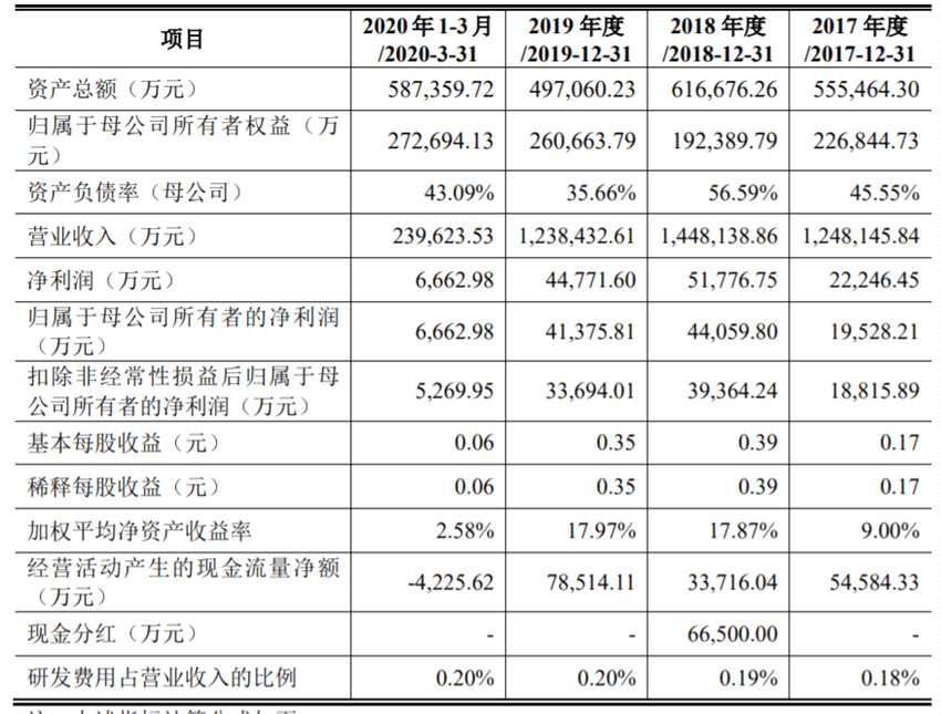 華潤材料主要從事聚酯材料及新材料的研發(fā)、生產(chǎn)和銷售,是全球聚酯材料的領(lǐng)軍企業(yè)。2017年至2020上半年,公司實現(xiàn)營收分別為:124.81億元、144.81億元、123.84億元、23.96億元;同期歸屬母公司所有者凈利潤分別為:1.95億元、4.41億元、4.14億元、6662.98萬元。