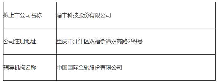 “牽手”中金公司,渝豐科技股份有限公司欲赴A上市
