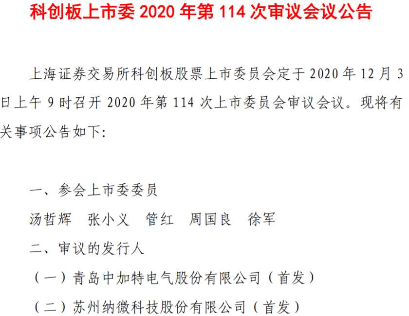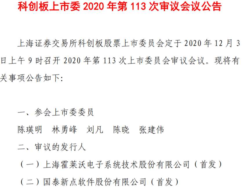 摘要: 11月25日,獲悉,上海證券交易所科創(chuàng)板股票上市委員會定于2020年12月3日上午9時召開2020年第113、114次上市委員會審議會議。