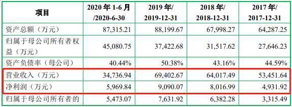 財(cái)務(wù)數(shù)據(jù)顯示,2017年至2020年上半年,新銳股份實(shí)現(xiàn)營收分別為5.35億元、6.40億元、6.94億元、3.47億元;實(shí)現(xiàn)凈利潤分別為4,931.92萬元、8,016.99萬元、9,090.07萬元、5,969.84萬元。