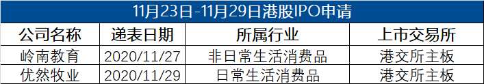 上周共有2家公司向港交所遞交招股書,分別為優(yōu)然牧業(yè)和嶺南教育。